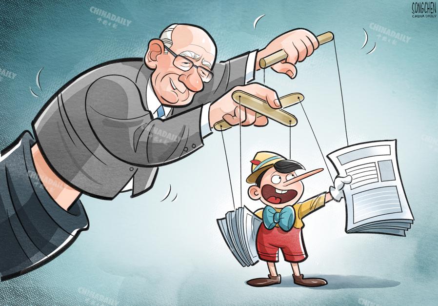 Anonymous American officials have recently spread fake news about the Chinese-Russian relationship that has since generated a firestorm of controversy in the US-led Western mainstream media. [Illustrated by Song Chen / China Daily]