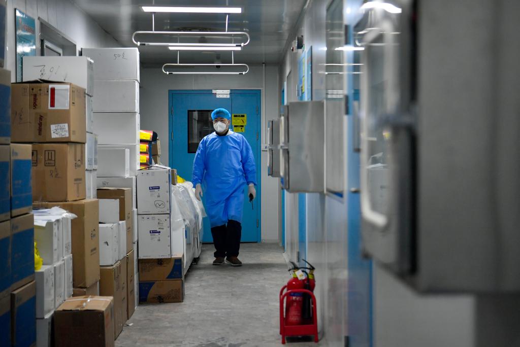 To ensure the smooth operation with faster speed, Geng works around the clock every day in a clean corridor with a length of 30 meters in the base. His makeshift desk is made of two paper boxes, on which he waits for new batches of samples coming in, screens samples and sometimes takes a nap for a short break.