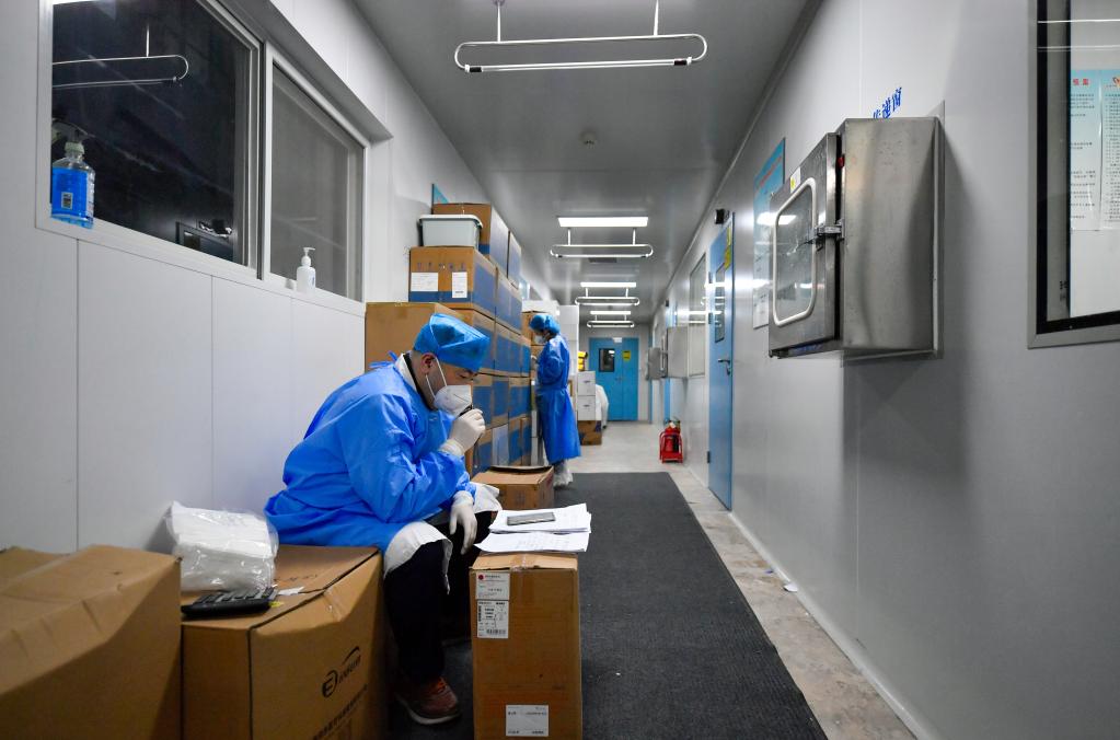 Just like Geng, other medical workers in the base are on duty day and night, in a hope of bringing the epidemic under control and resuming residents' usual hustle and bustle soon. (Xinhua/Sun Fanyue)