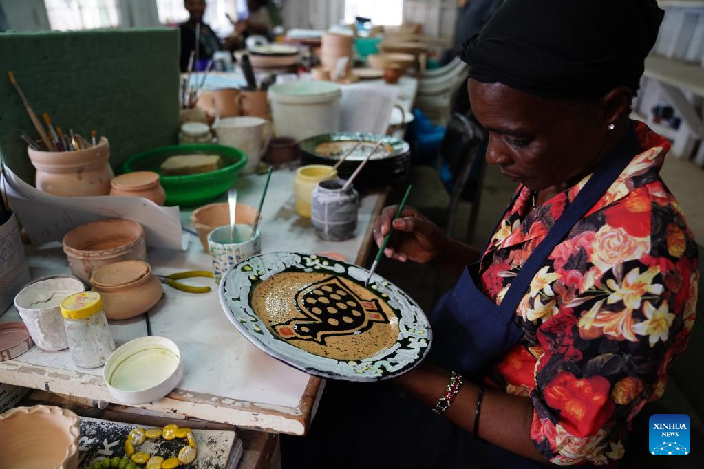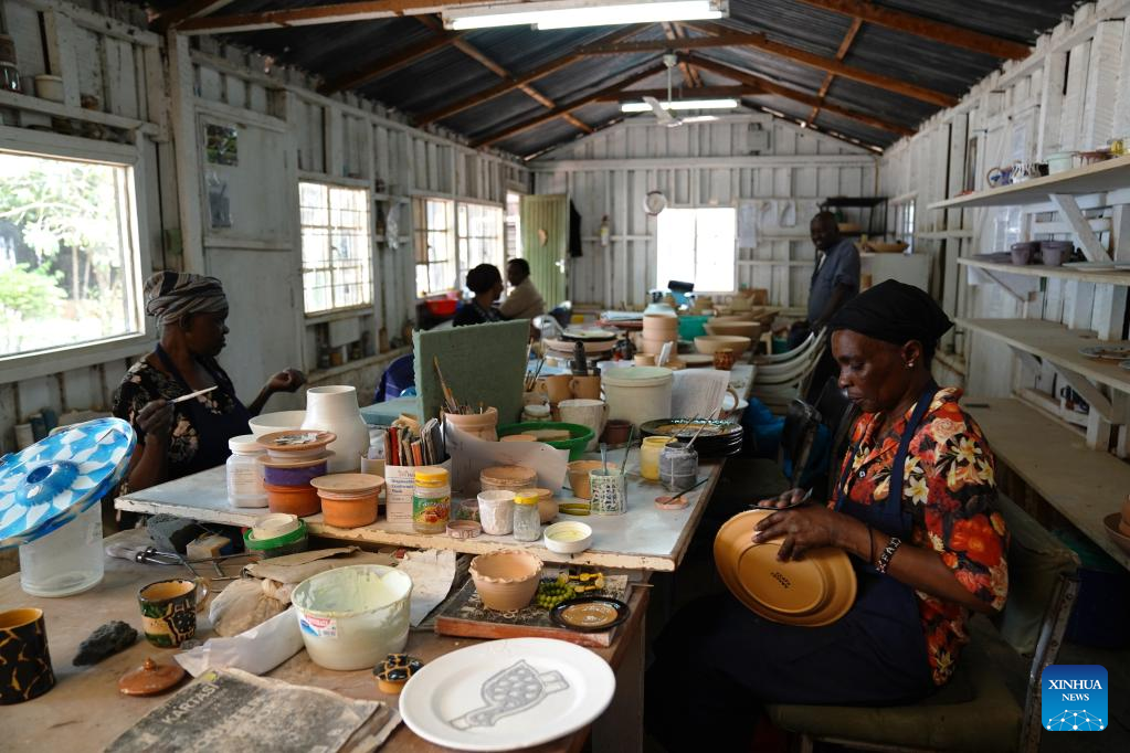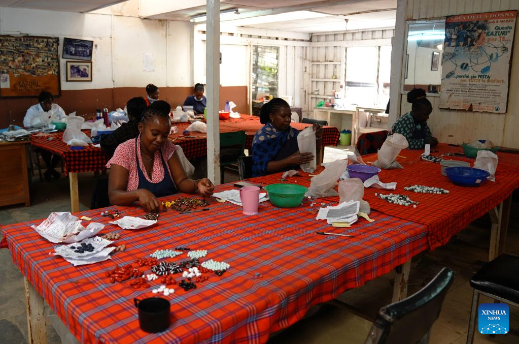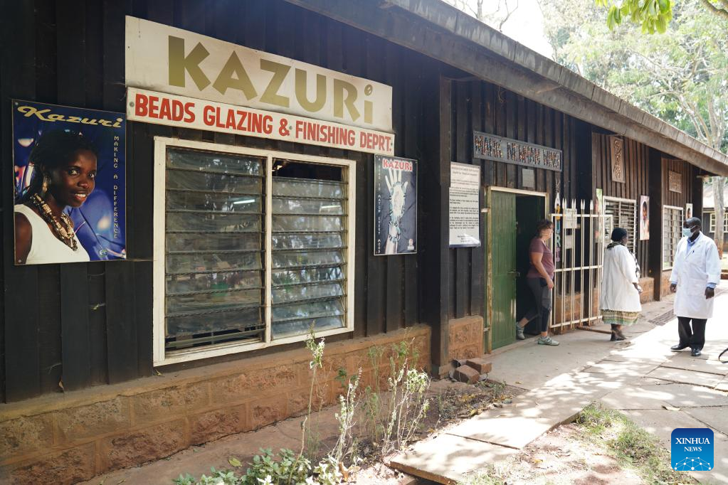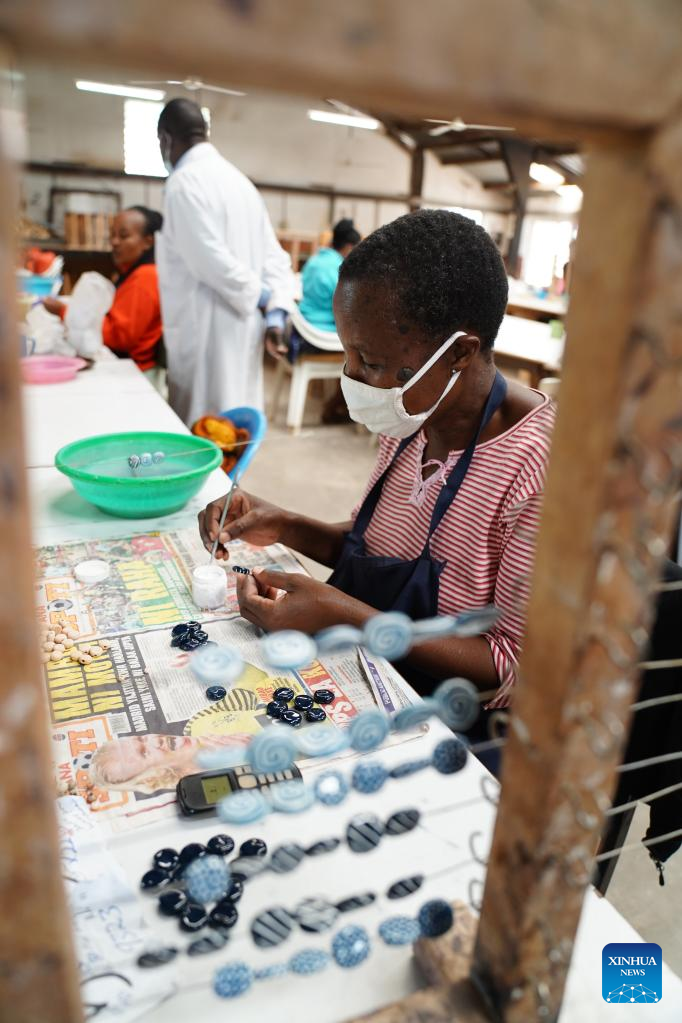 Photo taken on March 21, 2022 shows the Kazuri workshop in Nairobi, Kenya. Kazuri, Swahili name for "small and beautiful," is a famous local brand for hand-made and hand-painted ceramic beads, jewelry and pottery in Kenya. The Kazuri workshop in Kazen has employed over 340 women, mostly single mothers. (Xinhua/Dong Jianghui)