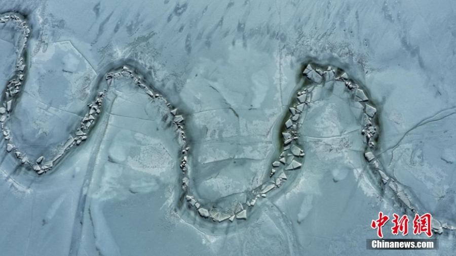 Photo shows thawing ice on the surface of Qinghai Lake in Northwest China's Qinghai Province, March 19, 2022. Qinghai Lake, China's largest inland salt lake, started to thaw as temperature rises. (Photo: China News Service/Zhao Linsong)