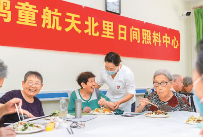 Photo shows elderly citizens, including those living alone and those who face difficulties living a normal life, enjoying a free lunch at a canteen located inside a neighborhood in Nankai district, north China’s Tianjin Municipality. Thanks to the implementation of an elderly care project, elderly citizens living in the area can enjoy free lunches at the canteen for a one-year period. (Photo/Wang Yinghao)