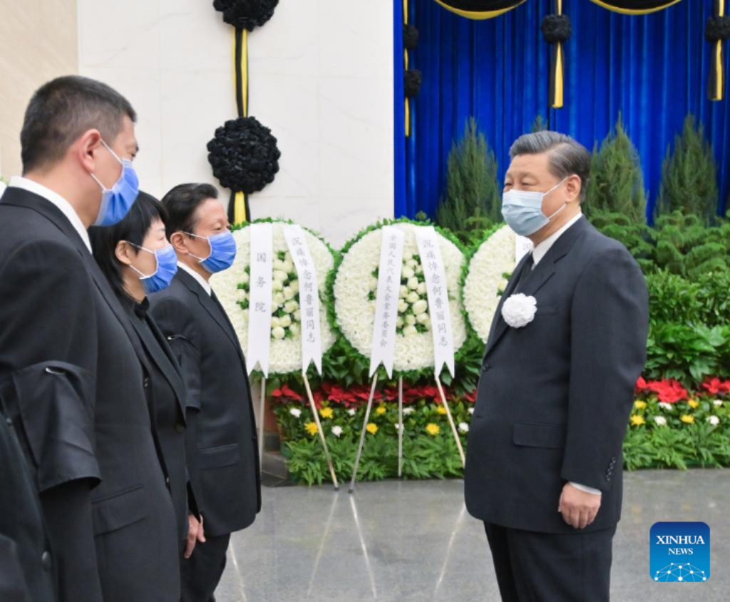 Xi Jinping offers his condolences to He Luli's family, in Beijing, capital of China, March 23, 2022. He Luli, former leader of the Revolutionary Committee of the Chinese Kuomintang, was cremated in Beijing on Wednesday. Xi Jinping, Li Zhanshu, and Wang Yang attended the funeral at the Babaoshan Revolutionary Cemetery on Wednesday morning. (Xinhua/Li Tao)