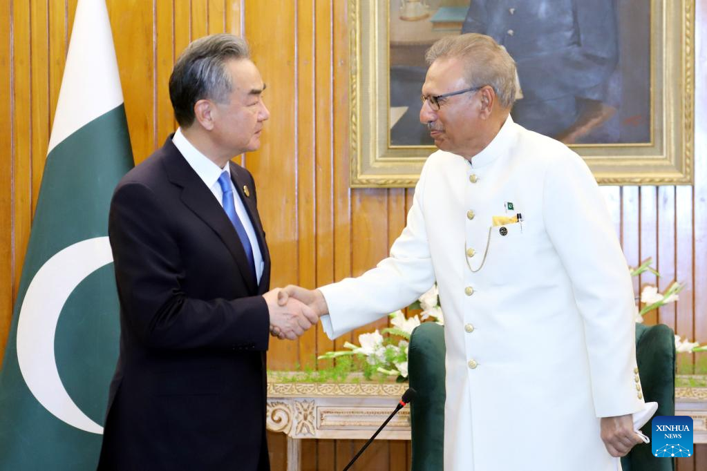 In a meeting with visiting Chinese State Councilor and Foreign Minister Wang Yi on Tuesday, Pakistani President Arif Alvi said that Pakistan and China have enjoyed friendly relations in the past decades featured with solid unity, mutual support and mutual assistance, with bilateral cooperation increasingly enhanced in all fields.