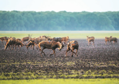 Photo shows a large herd of David’s deer (Elaphurus davidianus) frolicking about in the Shishou Milu National Nature Reserve in Jingzhou city, central China's Hubei Province. (Photo/Zhao Min)