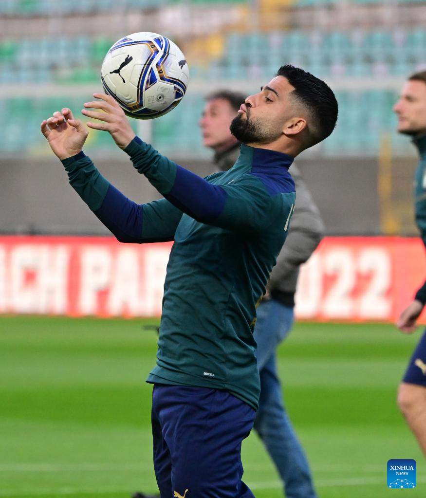 Italy's Lorenzo Insigne attends the training session ahead of the 2022 World Cup qualifying play-off football match between Italy and North Macedonia in Palermo, Italy, on March 23, 2022. (Photo by Alberto Lingria/Xinhua)