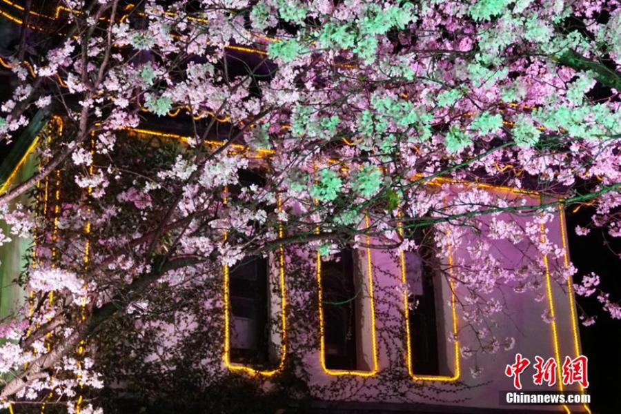 Stunning night scenery of cherry blossoms in East China's Wuxi (6)