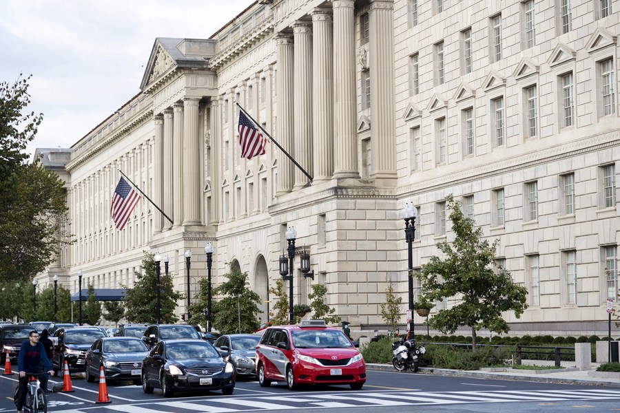 Photo taken on Oct 28, 2021 shows the Commerce Department building in Washington, DC, the United States. [Photo/Xinhua]
