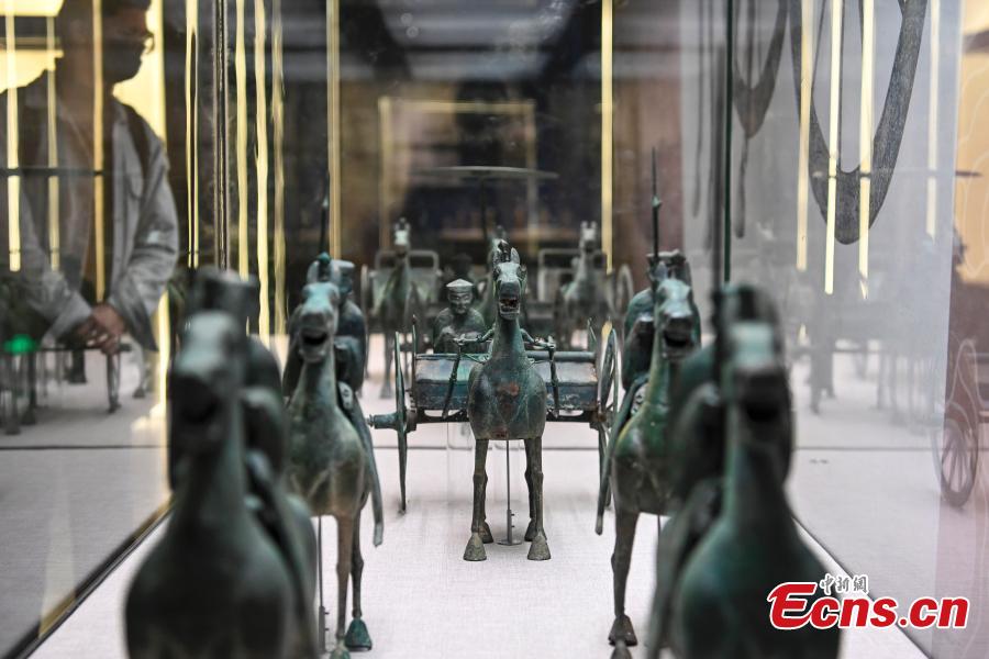 A bronze chariot and horses are on display at Guangdong Museum based in Guangzhou, south China's Guangdong Province, March 24, 2022. (Photo: China News Service/Chen Jiwen)