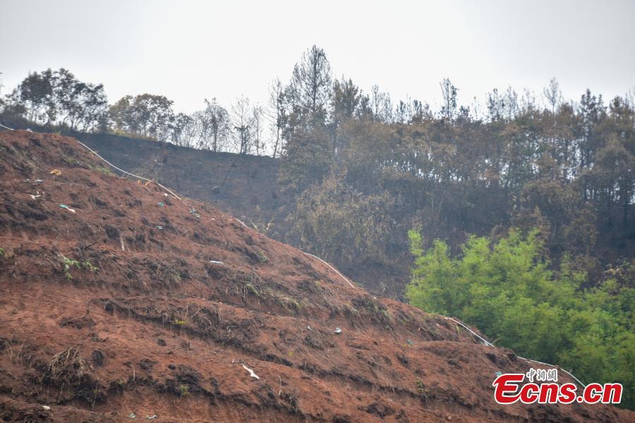 Rescuers search for the other black box in the area around the plane crash site in Tengxian County, south China's Guangxi Zhuang Autonomous Region, March 24, 2022. A black box of the China Eastern Airlines passenger plane that crashed Monday in south China's Guangxi Zhuang Autonomous Region was recovered on Wednesday afternoon. (Photo: China News Service/Wang Yizhao)