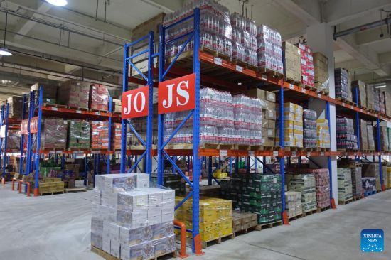 Photo taken on March 23, 2022 shows a view of a delivery center for food and drinks in Shenyang, capital of northeast China's Liaoning Province. The city transit system of Shenyang is out of service from March 24-30, in a bid to contain the local resurgence of COVID-19. (Xinhua/Zhai Xiaoshan)