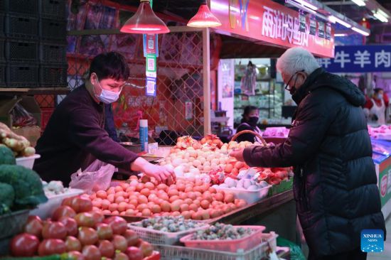 A resident buys eggs at a market in Shenyang, capital of northeast China's Liaoning Province, March 25, 2022. The city transit system of Shenyang is out of service from March 24-30, in a bid to contain the local resurgence of COVID-19. (Xinhua/Wang Yijie)