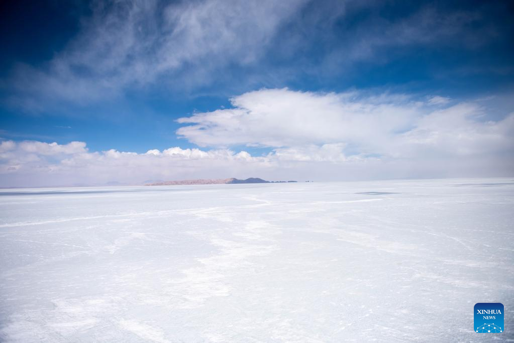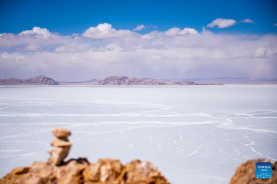 Aerial photo taken on March 24, 2022 shows a view of the frozen Serling Tso Lake in Nagqu, southwest China's Tibet Autonomous Region. (Xinhua/Zhou Dixiao)