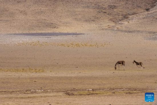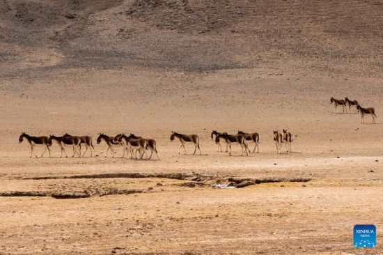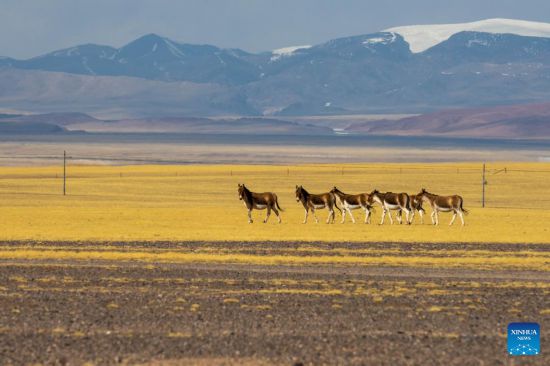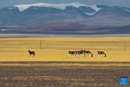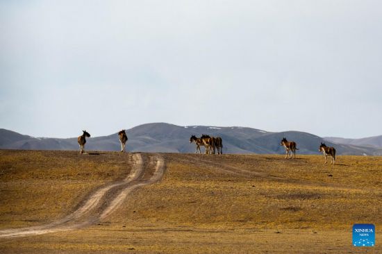 Tibetan wild donkeys are seen in Nagqu of southwest China's Tibet Autonomous Region, March 24, 2022. Tibet Autonomous Region in southwest China has become an ideal habitat for wild animals over the years amid the region's thriving biodiversity protection endeavors.