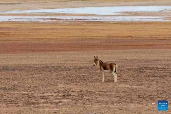 A Tibetan wild donkey is seen in Nagqu of southwest China's Tibet Autonomous Region, March 25, 2022. Tibet Autonomous Region in southwest China has become an ideal habitat for wild animals over the years amid the region's thriving biodiversity protection endeavors.