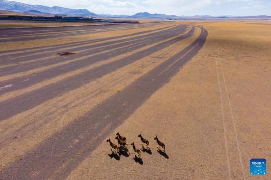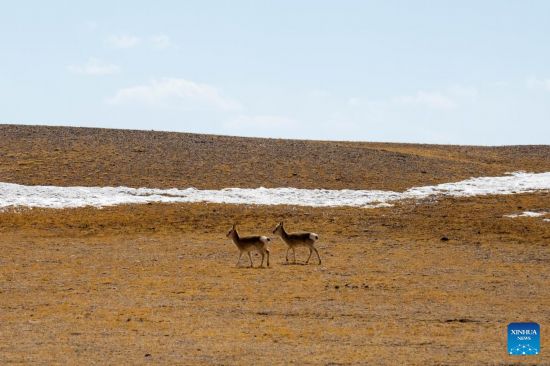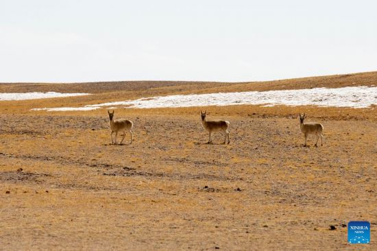 Tibetan antelopes are seen in Nagqu of southwest China's Tibet Autonomous Region, March 25, 2022. Tibet Autonomous Region in southwest China has become an ideal habitat for wild animals over the years amid the region's thriving biodiversity protection endeavors.