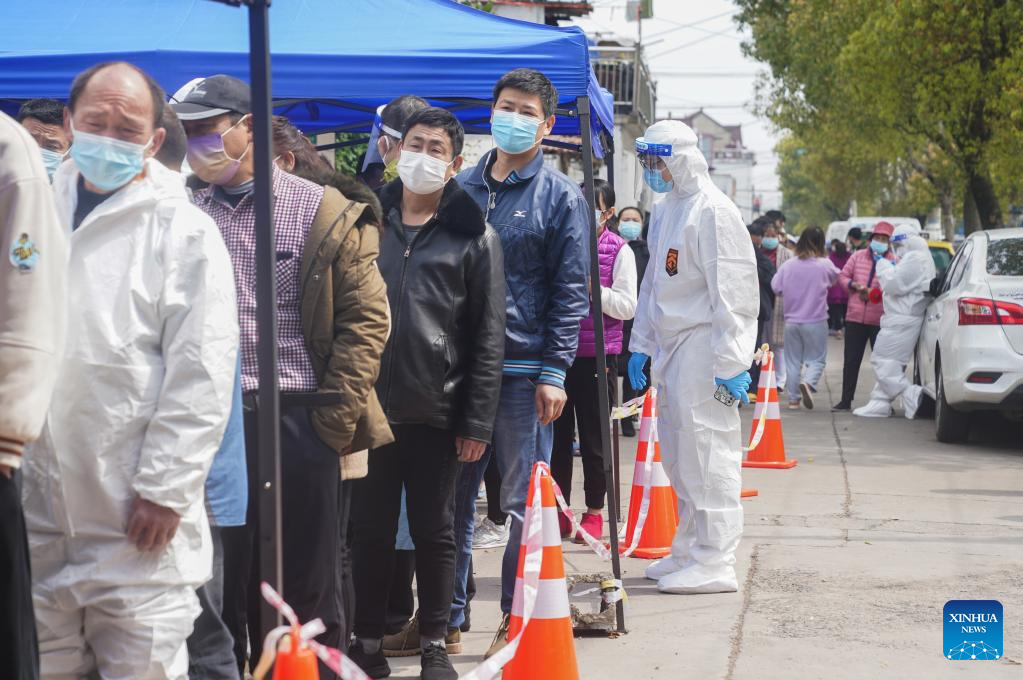 Citizens take COVID-19 nucleic acid test in east China's Shanghai, March 26, 2022. Shanghai on Saturday launched a new round of city-wide screening using both nucleic acid and antigen testing amid its latest efforts to contain the COVID-19 outbreak. (Xinhua/Ding Ting)