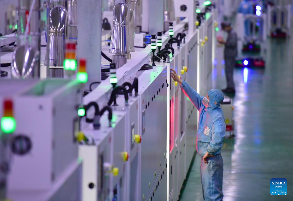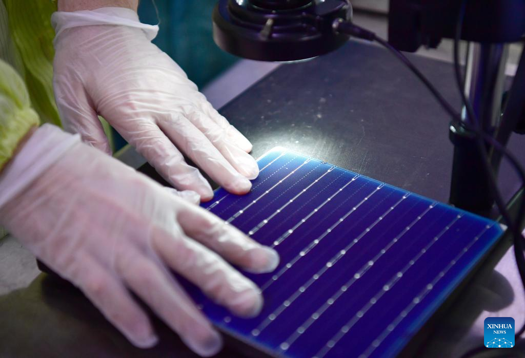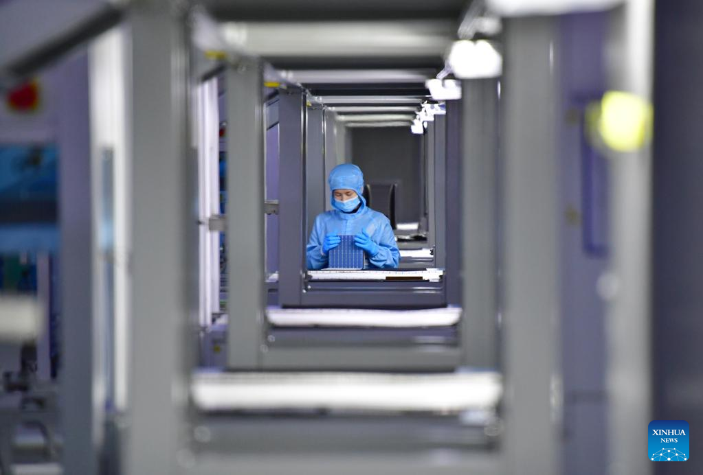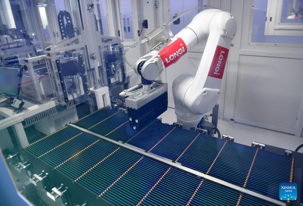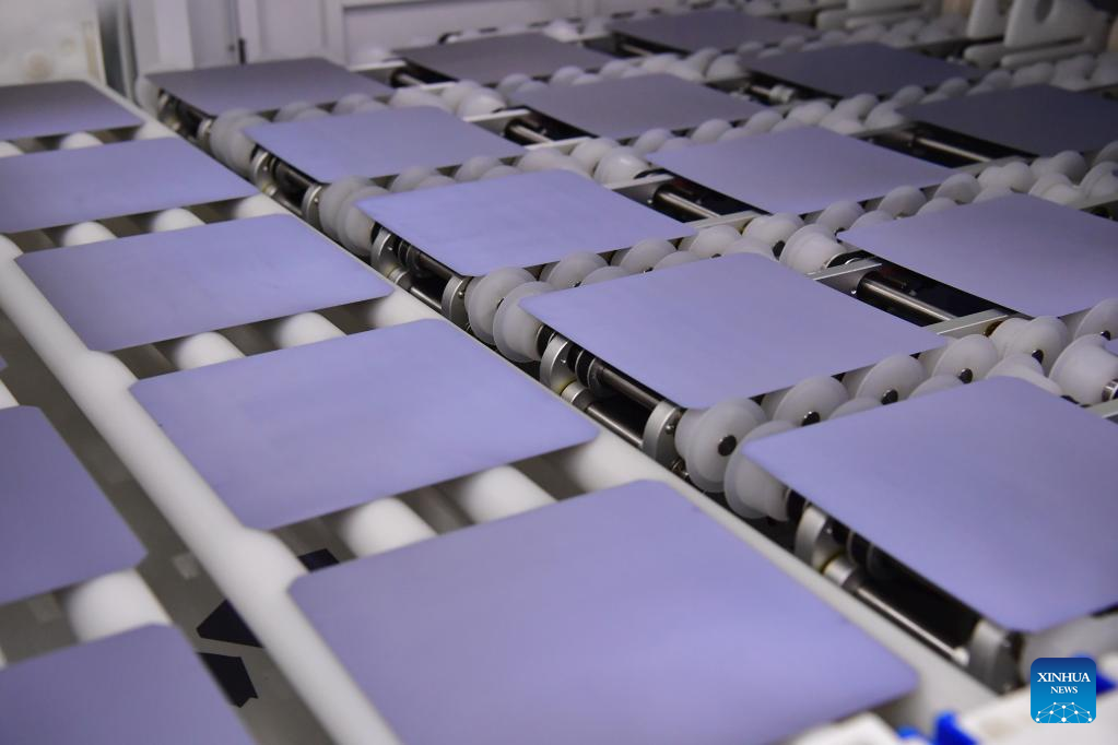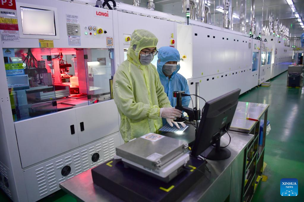 The company's monocrystalline silicon solar cell factory in Xi'an produced nearly 400 million cell wafers in the first quarter of 2022. (Xinhua/Shao Rui)