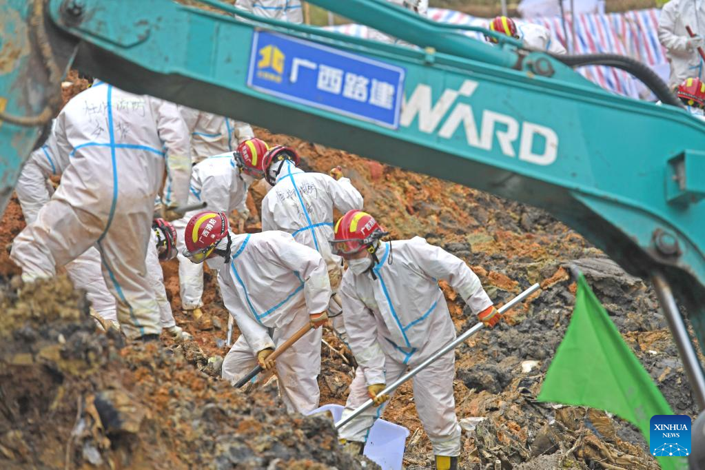 Rescuers conduct search and rescue work at core site of recent plane crash in Guangxi