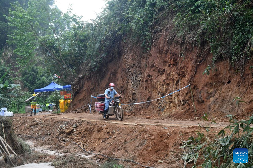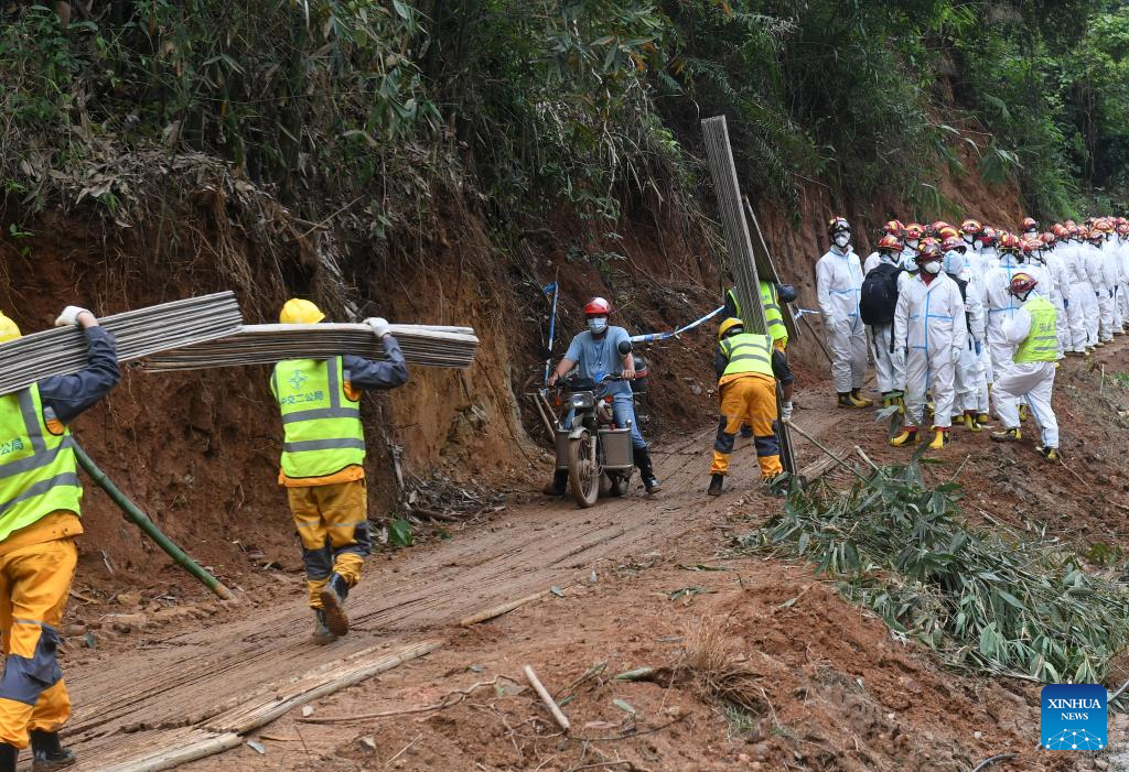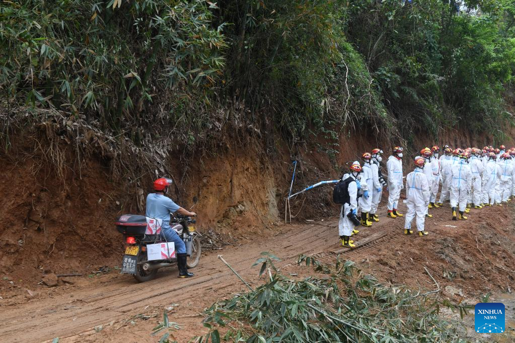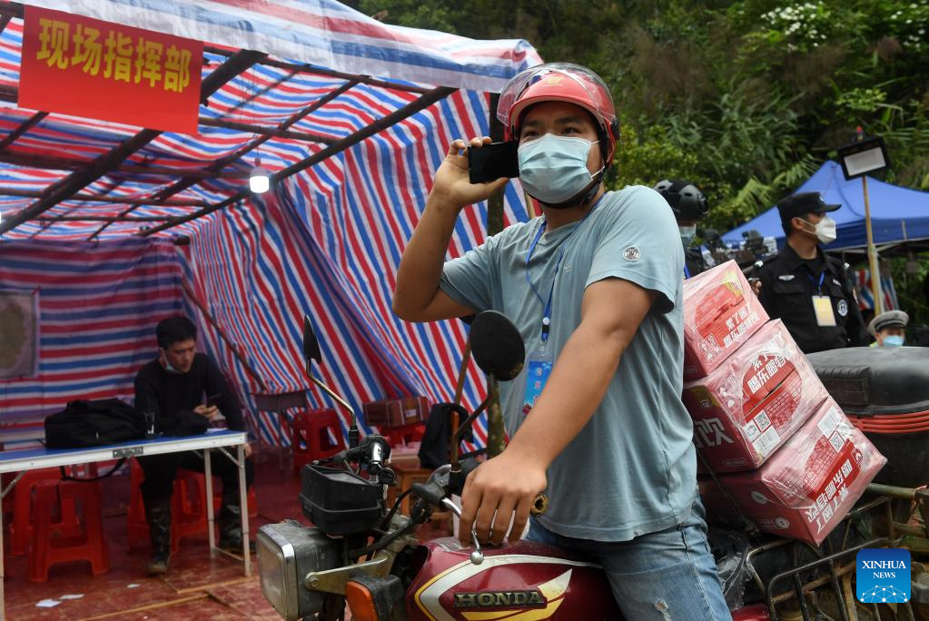 Local villagers organized a rescue volunteer group to help transport rescue workers and relief supplies with motorcycles, as all-out efforts are made to continue the rescue and search work. Approximately 70 volunteers from the group are on duty during the day while about 30 others work at night to ensure an uninterrupted transportation service. (Xinhua/Zhou Hua)