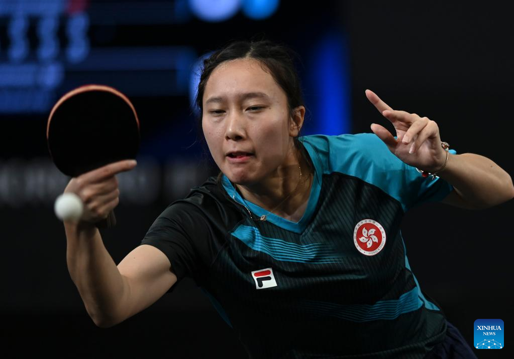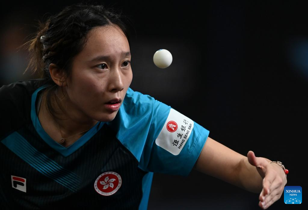 Soo Wai Yam Minnie of China's Hong Kong hits a return during the women's singles round of 64 match between Soo Wai Yam Minnie of China's Hong Kong and Joo Cheonhui of South Korea at the WTT Star Contender Doha 2022 in Doha, Qatar, March 27, 2022. (Photo by Nikku/Xinhua)