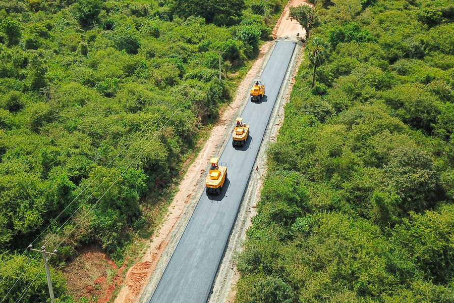 Arial photo taken on June 12, 2021 shows the road in a village in Sri Lanka's Northern Province. (China State Construction Engineering Corporation/Handout via Xinhua)