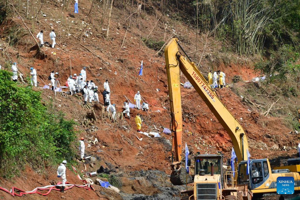 The Boeing 737 aircraft, which departed from Kunming, capital of southwest China's Yunnan Province, and was bound for Guangzhou, capital of Guangdong Province, crashed into a mountainous area in Tengxian County, Guangxi, at around 2:38 p.m. on March 21. All 132 people on board the plane were killed.