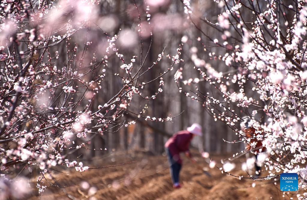 A farmer works in the field in Liaojunbu Village, Yuezhuang Township, Yiyuan County of Zibo City, east China's Shandong Province, March 28, 2022. (Photo by Zhao Dongshan/Xinhua)
