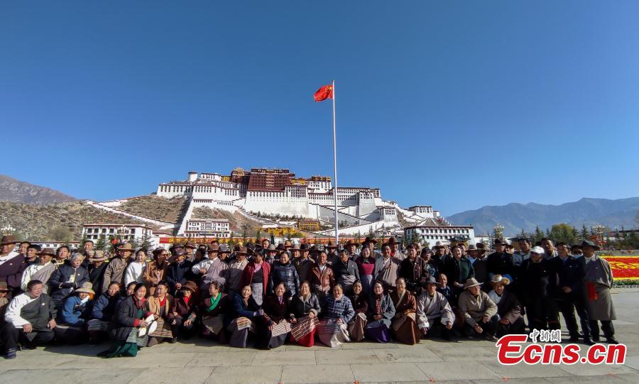 People pose for a group photo after a ceremony to celebrate the Serfs' Emancipation Day at the square in front of the Potala Palace in Lhasa, capital of southwest China's Tibet Autonomous Region, March 28, 2022. (Photo: China News Service/Jiang Feibo)