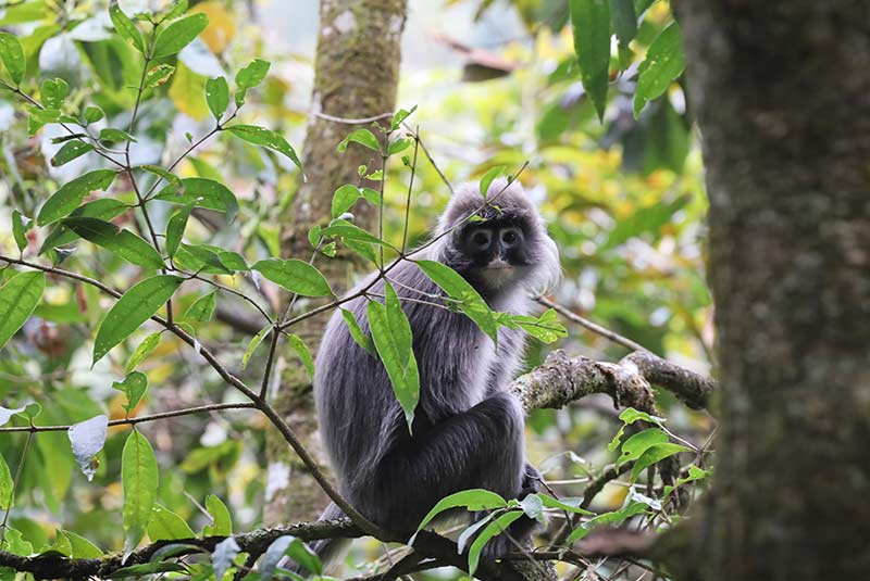 Local people have given the langurs an endearing name of "little golden monkeys" in view of the fact that newborn langurs are covered from head to toe in golden fur. During the first three to four months after birth, the primate species' fur will gradually turn into a blue-gray color. At present, the langurs in the area live in three troops, while the total population now exceeds 70 individuals, having expanded by around 60 langurs compared with 16 years ago.
