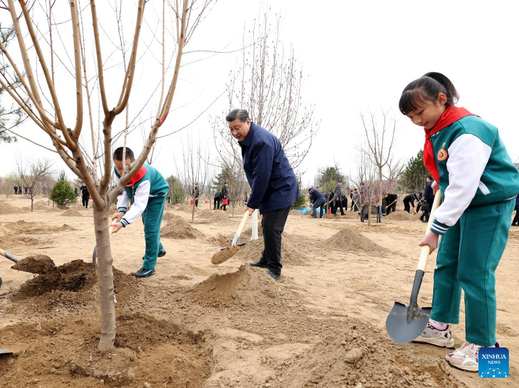 BEIJING, March 30 (Xinhua) -- President Xi Jinping on Wednesday planted trees in Beijing, marking the 10th year of his participation as the top leader in the annual tree-planting activity in the Chinese capital.