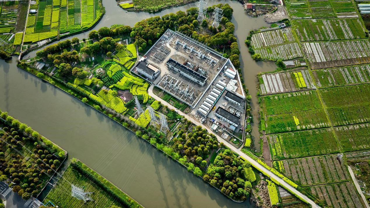 Photo shows an aerial view of a 35 kV medium voltage direct-mounted energy storage power station, March 24, 2022. (People’s Daily Online/Shi Jiamin)