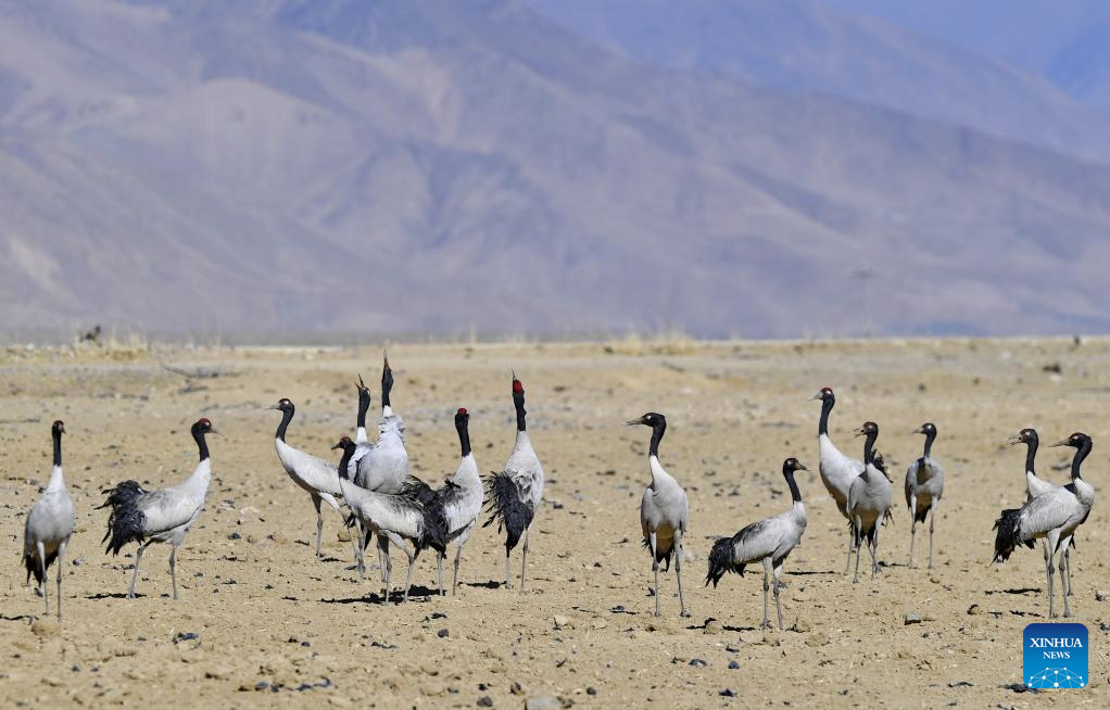 Tibet has seen a steady increase in endangered wildlife population, thanks to its continuous efforts over the past decades. The population of black-necked cranes has exceeded 10,000 from 1,000 to 3,000 previously. (Xinhua/Zhang Rufeng)