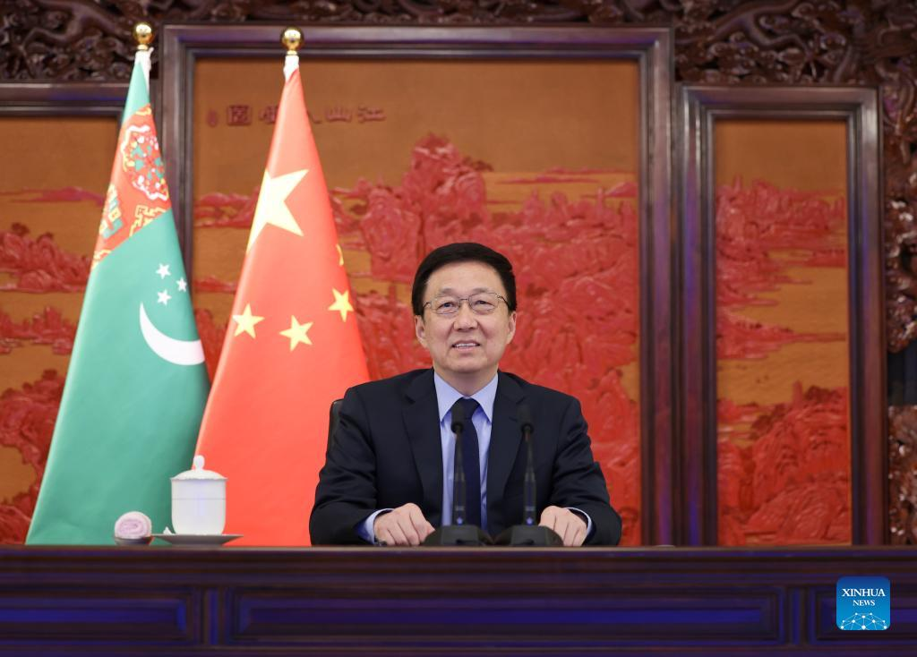 Han proposed China and Turkmenistan take collaboration on natural gas as the priority of pragmatic cooperation to elevate natural gas cooperation to a new high and actively expand cooperation in developing renewable energy such as wind and solar power. He also called for enhanced cooperation in agriculture, transportation, finance, and other fields.
