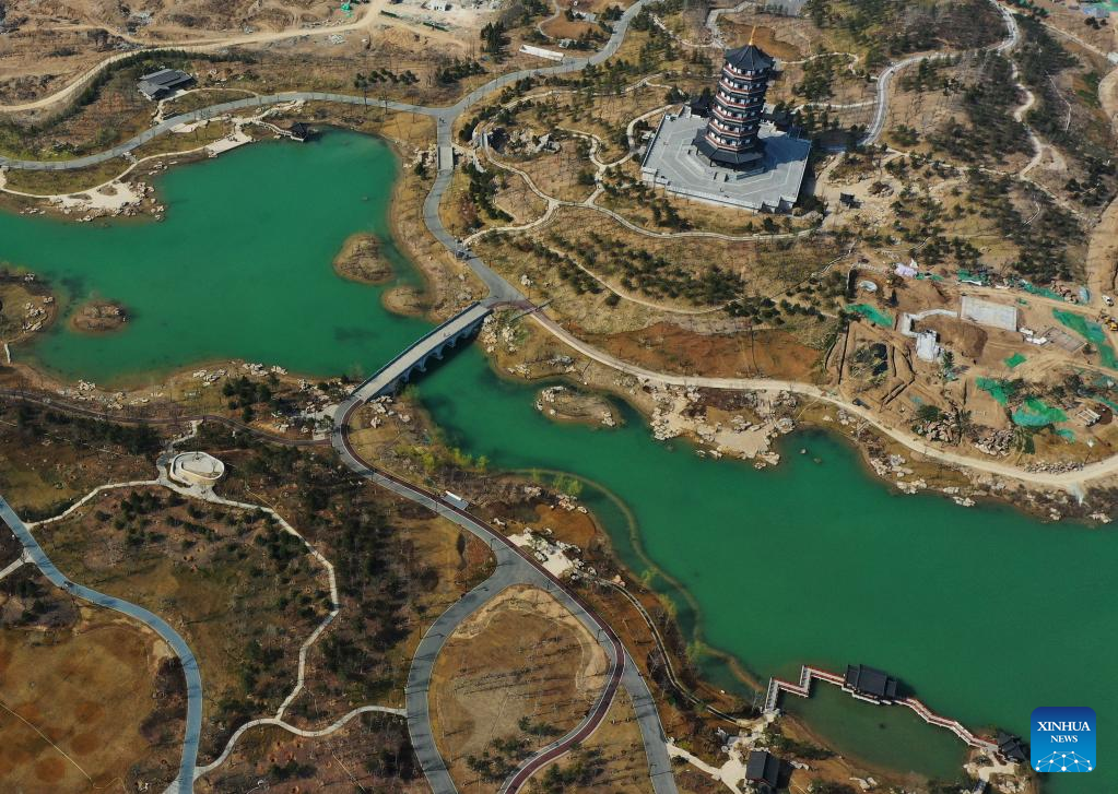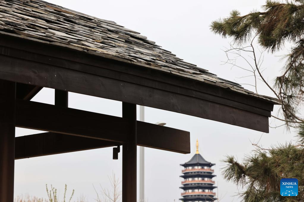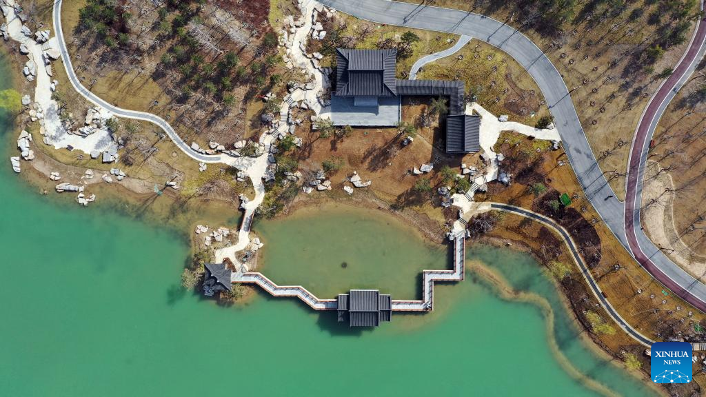 Photo taken on March 30, 2022 shows the Yuerong Park in Xiong'an New Area, north China's Hebei Province. Dubbed China's youngest city and a "city of the future," Xiong'an New Area marks its fifth anniversary on Friday. China announced plans to establish Xiong'an New Area on April 1, 2017, to relieve Beijing of functions non-essential to its role as the national capital and advance the coordinated development of the Beijing-Tianjin-Hebei region.By the end of 2021, construction has begun on 177 key projects in Xiong'an, with a total investment of 618.4 billion yuan (97.2 billion U.S. dollars). Sixty of them have been completed. So far, the major roads to the city, the main streets in the city, the Ecological Corridor, and the urban water system have taken shape.(Xinhua/Xing Guangli)