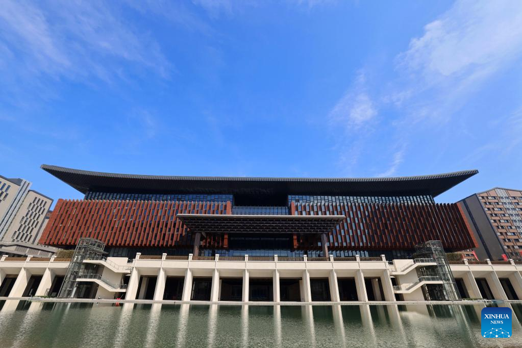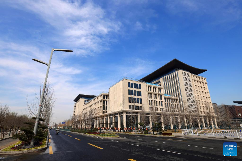 Photo taken on March 31, 2022 shows the business service center in Xiong'an New Area, north China's Hebei Province. Dubbed China's youngest city and a "city of the future," Xiong'an New Area marks its fifth anniversary on Friday. China announced plans to establish Xiong'an New Area on April 1, 2017, to relieve Beijing of functions non-essential to its role as the national capital and advance the coordinated development of the Beijing-Tianjin-Hebei region.By the end of 2021, construction has begun on 177 key projects in Xiong'an, with a total investment of 618.4 billion yuan (97.2 billion U.S. dollars). Sixty of them have been completed. So far, the major roads to the city, the main streets in the city, the Ecological Corridor, and the urban water system have taken shape. (Xinhua/Xing Guangli)