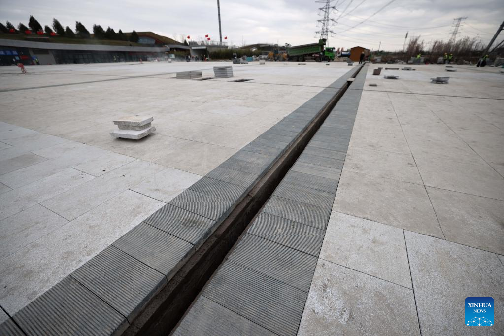 Photo taken on March 30, 2022 shows a ditch that can collect rainwater at a park in Xiong'an New Area, north China's Hebei Province. Dubbed China's youngest city and a "city of the future," Xiong'an New Area marks its fifth anniversary on Friday. China announced plans to establish Xiong'an New Area on April 1, 2017, to relieve Beijing of functions non-essential to its role as the national capital and advance the coordinated development of the Beijing-Tianjin-Hebei region.By the end of 2021, construction has begun on 177 key projects in Xiong'an, with a total investment of 618.4 billion yuan (97.2 billion U.S. dollars). Sixty of them have been completed. So far, the major roads to the city, the main streets in the city, the Ecological Corridor, and the urban water system have taken shape.(Xinhua/Xing Guangli)