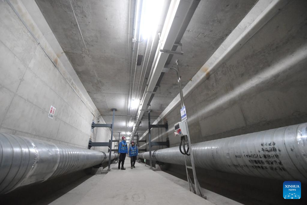 Staff members inspect an underground pipeline system in Rongdong District of Xiong'an New Area, north China's Hebei Province, March 30, 2022. Dubbed China's youngest city and a "city of the future," Xiong'an New Area marks its fifth anniversary on Friday. China announced plans to establish Xiong'an New Area on April 1, 2017, to relieve Beijing of functions non-essential to its role as the national capital and advance the coordinated development of the Beijing-Tianjin-Hebei region.By the end of 2021, construction has begun on 177 key projects in Xiong'an, with a total investment of 618.4 billion yuan (97.2 billion U.S. dollars). Sixty of them have been completed. So far, the major roads to the city, the main streets in the city, the Ecological Corridor, and the urban water system have taken shape.(Xinhua/Zhu Xudong)