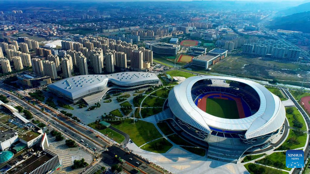 Areial photo taken on Sep. 28, 2021, shows a view of Wenzhou Sports Centre Stadium, a venue of the 19th Asian Games Hangzhou 2022 in Wenzhou, east China's Zhejiang Province. (Xinhua)