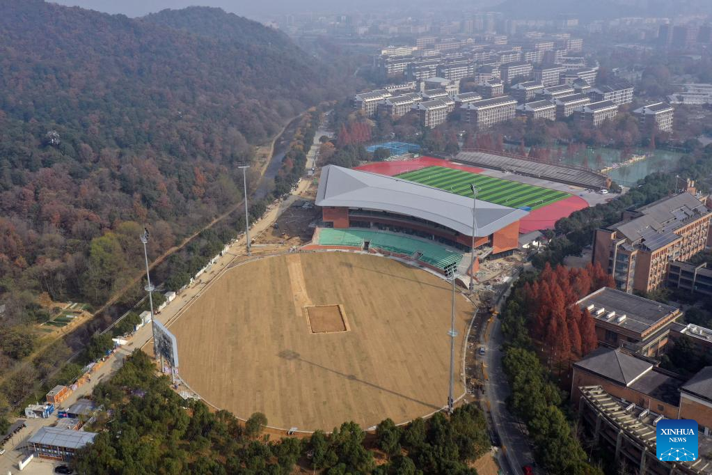 Areial photo taken on Dec. 10, 2021, shows a view of Zhejiang University of Technology Pingfeng Cricket Field, a venue of the 19th Asian Games Hangzhou 2022 in Hangzhou, east China's Zhejiang Province. (Xinhua)
