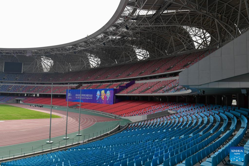 Photo taken on Sep. 22, 2021, shows a view of Gongshu Canal Sports Park Stadium, a venue of the 19th Asian Games Hangzhou 2022 in Hangzhou, east China's Zhejiang Province. (Xinhua)