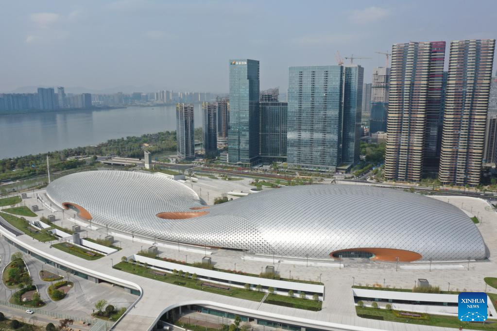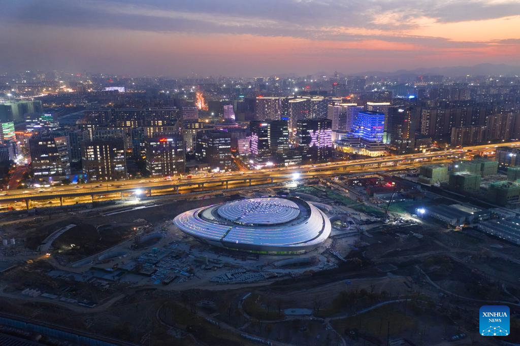 Areial photo taken on Dec. 27, 2021, shows a view of China Hangzhou Esports Centre, a venue of the 19th Asian Games Hangzhou 2022 in Hangzhou, east China's Zhejiang Province. (Xinhua)