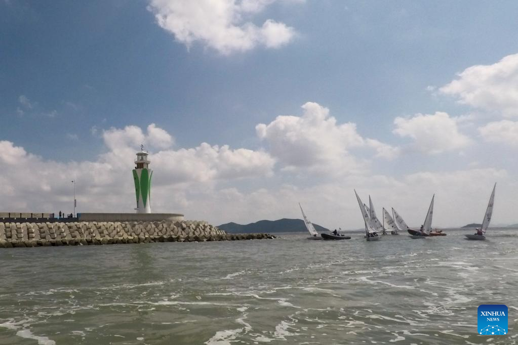 Photo taken on Sep. 25, 2021, shows a view of Ningbo Xiangshan Sailing Centre, a venue of the 19th Asian Games Hangzhou 2022 in Ningbo, east China's Zhejiang Province. (Xinhua/Jiang Han)