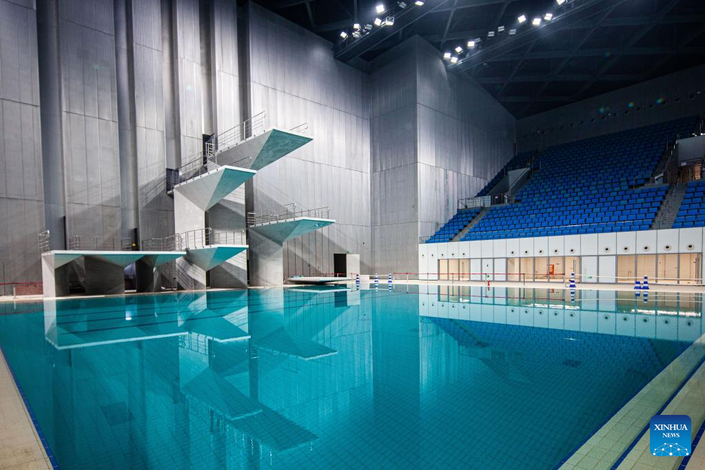 Photo taken on April 12, 2021, shows a view of Hangzhou Olympic Sports Centre Aquatic Sports Arena, a venue of the 19th Asian Games Hangzhou 2022 in Hangzhou, east China's Zhejiang Province. (Xinhua/Jiang Han)