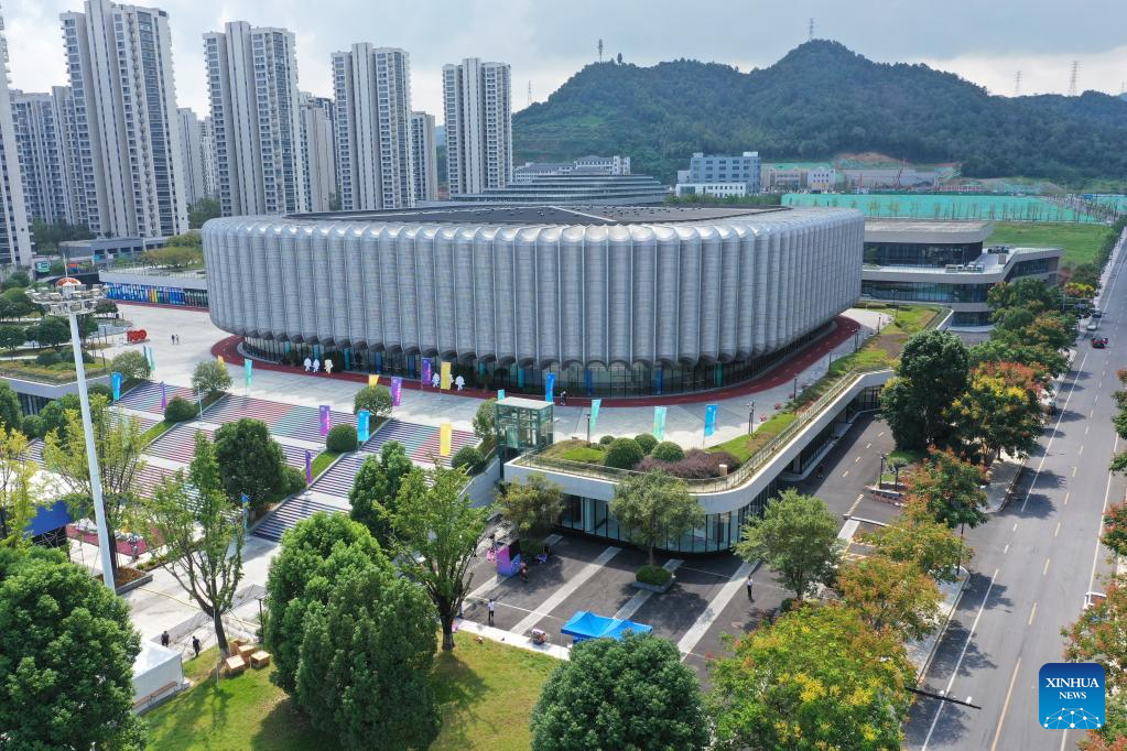 Areial photo taken on Sep. 10, 2021, shows a view of Lin'an Sports Culture &Exhibition Centre, a venue of the 19th Asian Games Hangzhou 2022 in Hangzhou, east China's Zhejiang Province. (Xinhua)