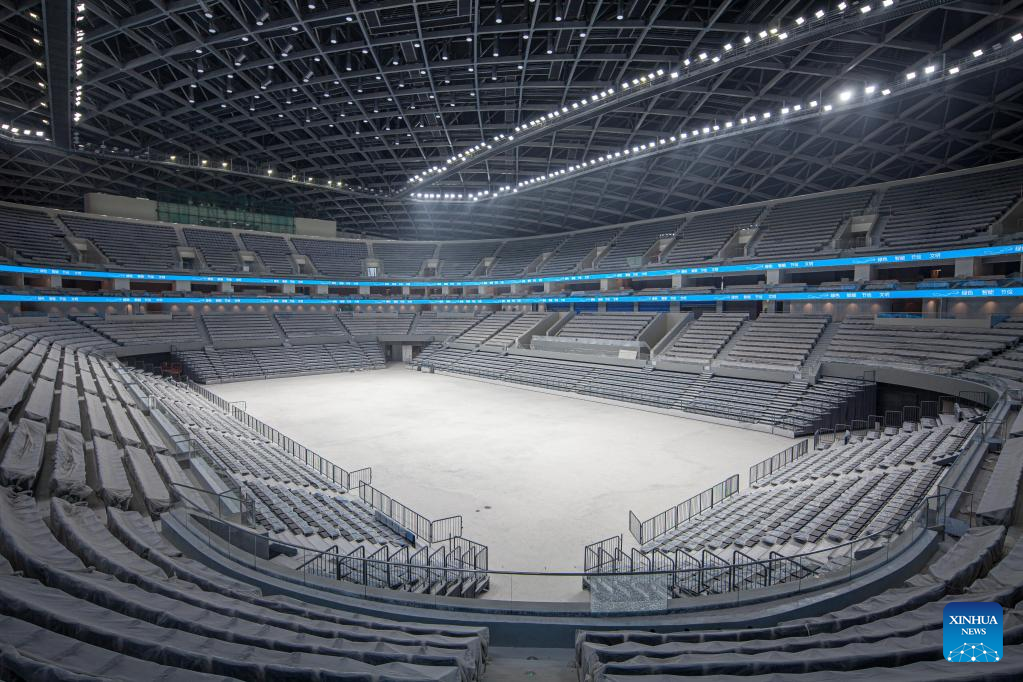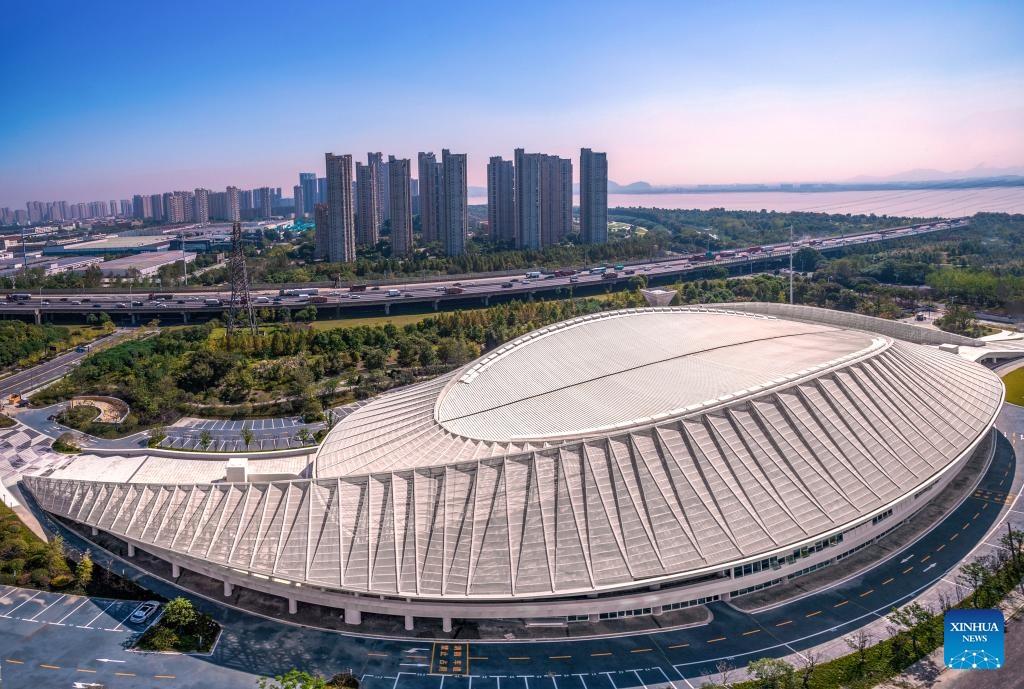 Photo taken on April 12, 2021, shows a view of Hangzhou Olympic Sports Centre Gymnasium, a venue of the 19th Asian Games Hangzhou 2022 in Hangzhou, east China's Zhejiang Province. (Xinhua/Jiang Han)