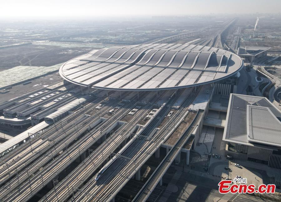 Aerial photo taken on Dec. 27, 2021 shows the Xiongan Railway Station of the Beijing-Xiongan intercity railway in Xiongan New Area, north China's Hebei Province.