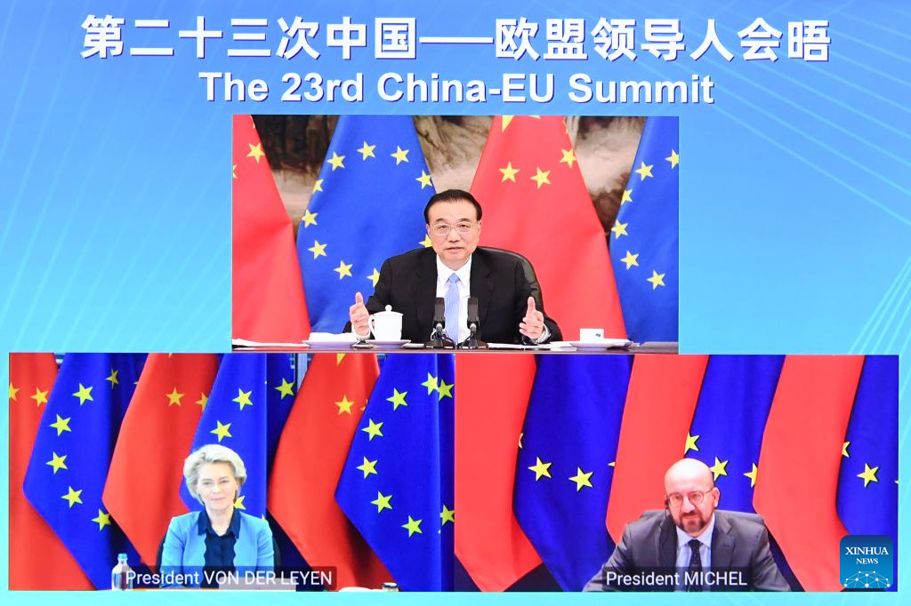 The pledge came as Li held the 23rd China-EU leaders' meeting with President of the European Council Charles Michel and President of the European Commission Ursula von der Leyen via video link.
