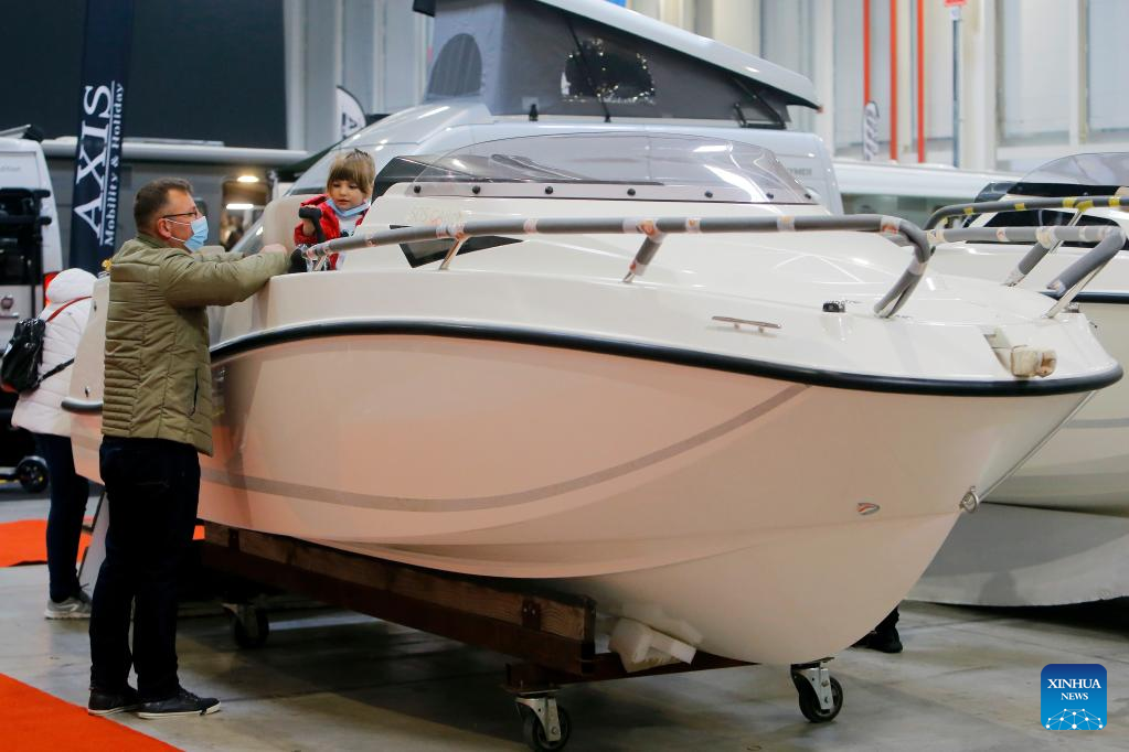 A man and a child visit the Bucharest International Boat Show, Caravan, Motorhome and Adventure Fair in Bucharest, Romania, on April 2, 2022. (Photo by Cristian Cristel/Xinhua)