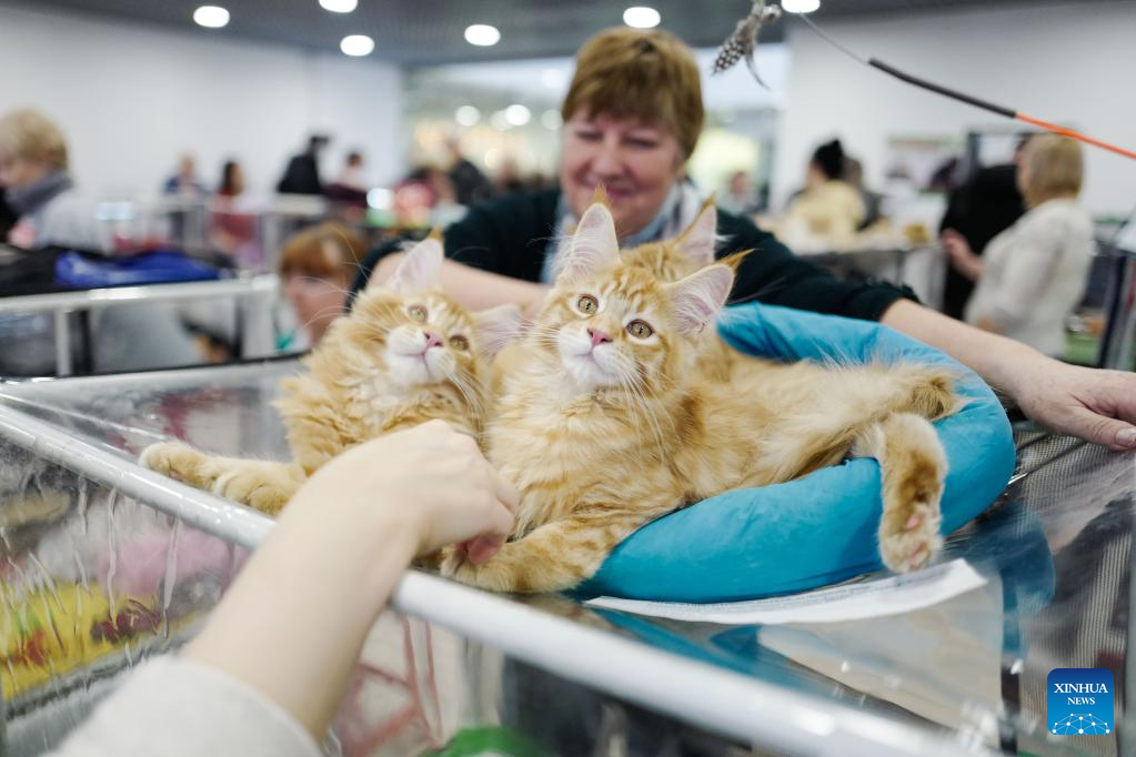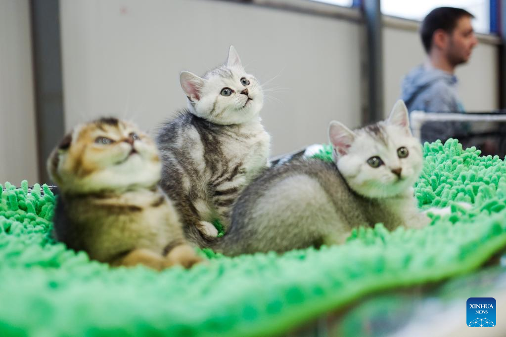 Cats are seen during a cat show in Moscow, Russia, April 2, 2022. Over 300 cats of more than 25 breeds participated in this cat show. (Xinhua/Bai Xueqi)